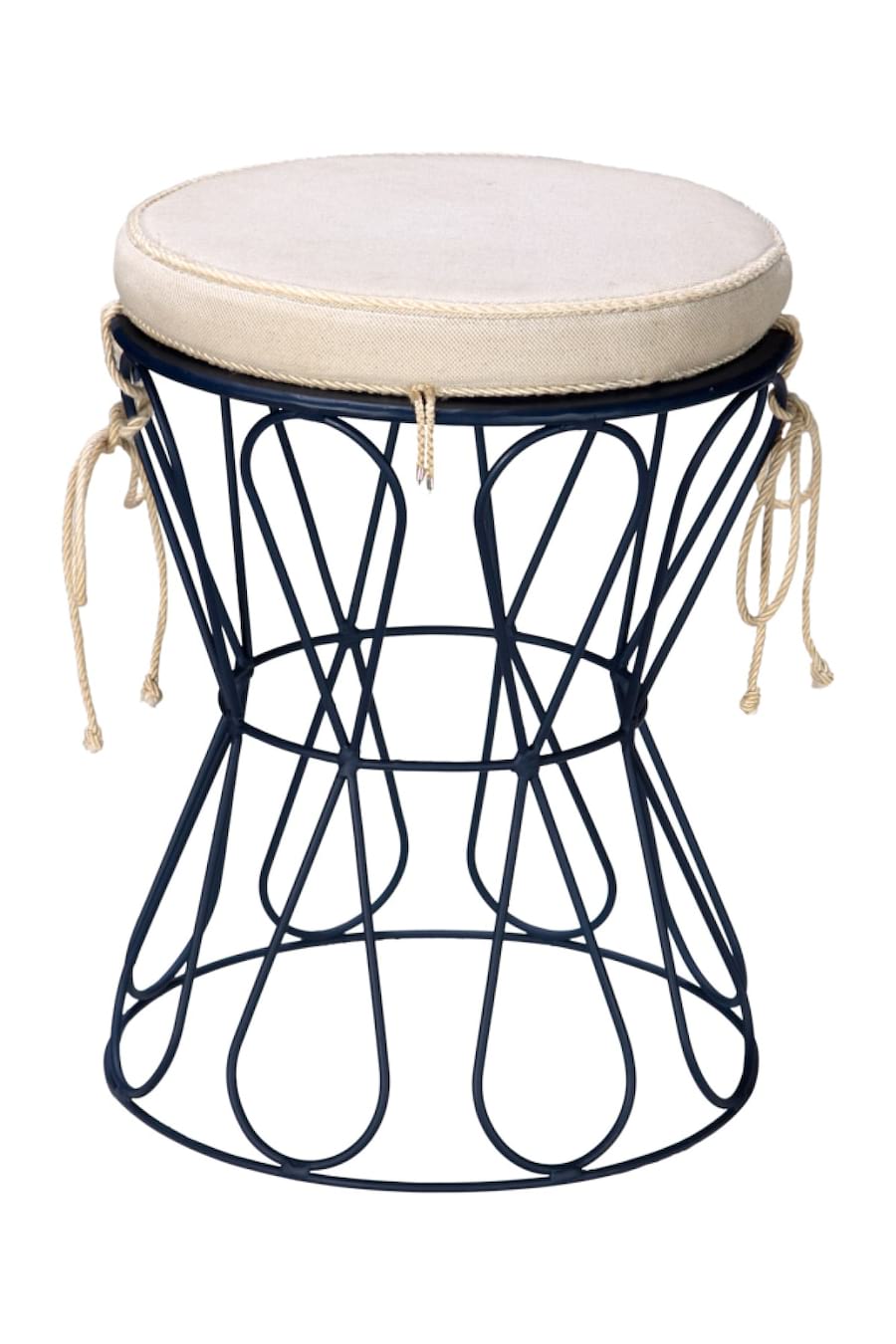 BANQUETA DE FERRO MARIA ANTONIETA AZUL MARINHO COM ASSENTO LINHO CRU