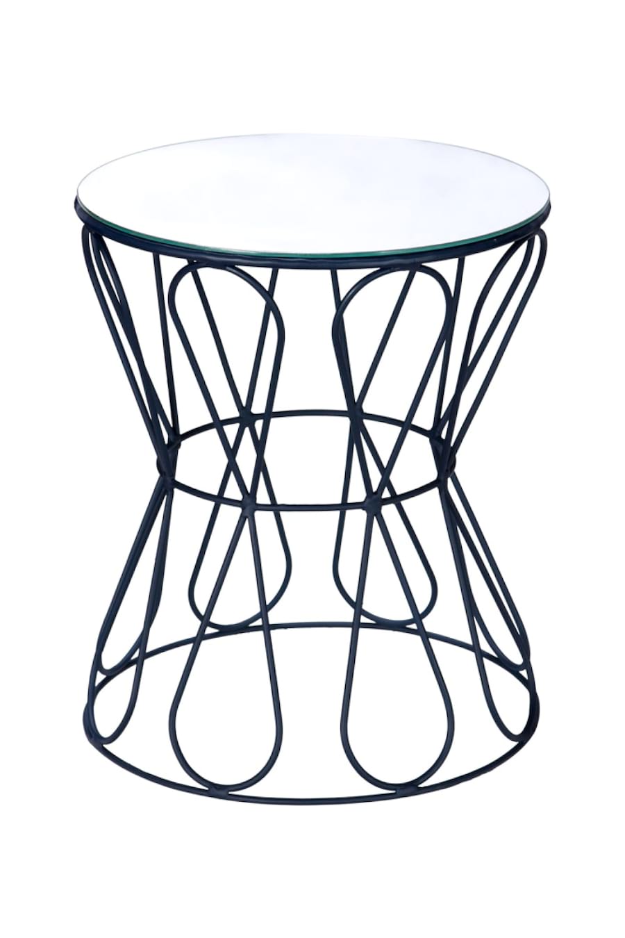 BANQUETA DE FERRO MARIA ANTONIETA AZUL MARINHO COM ESPELHO
