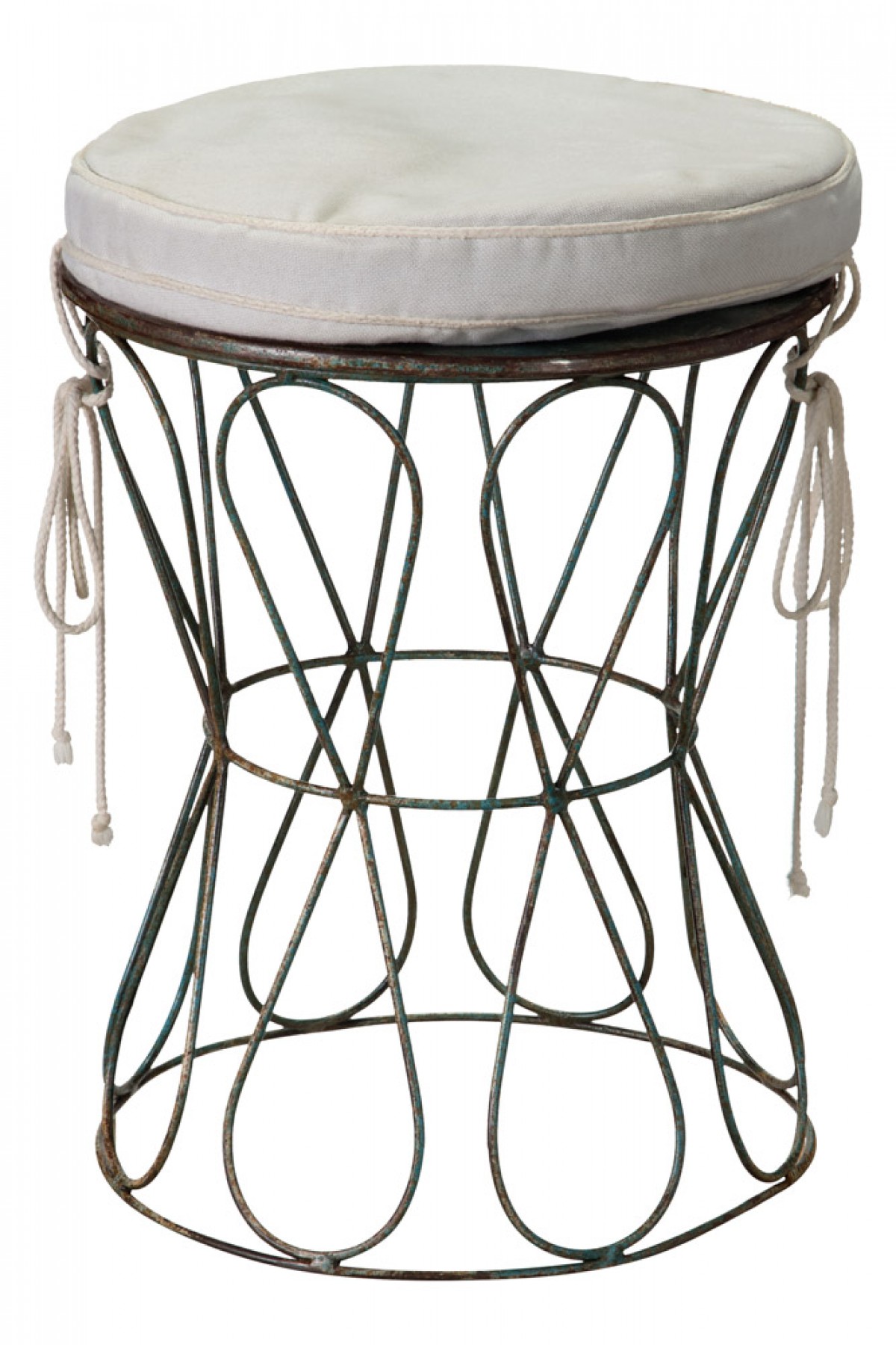 BANQUETA DE FERRO VERDE MARIA ANTONIETA ASSENTO LINHO CRU