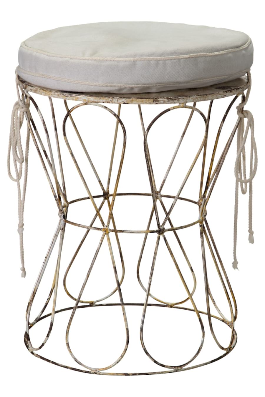 BANQUETA DE FERRO BRANCA MARIA ANTONIETA COM ASSENTO CRU