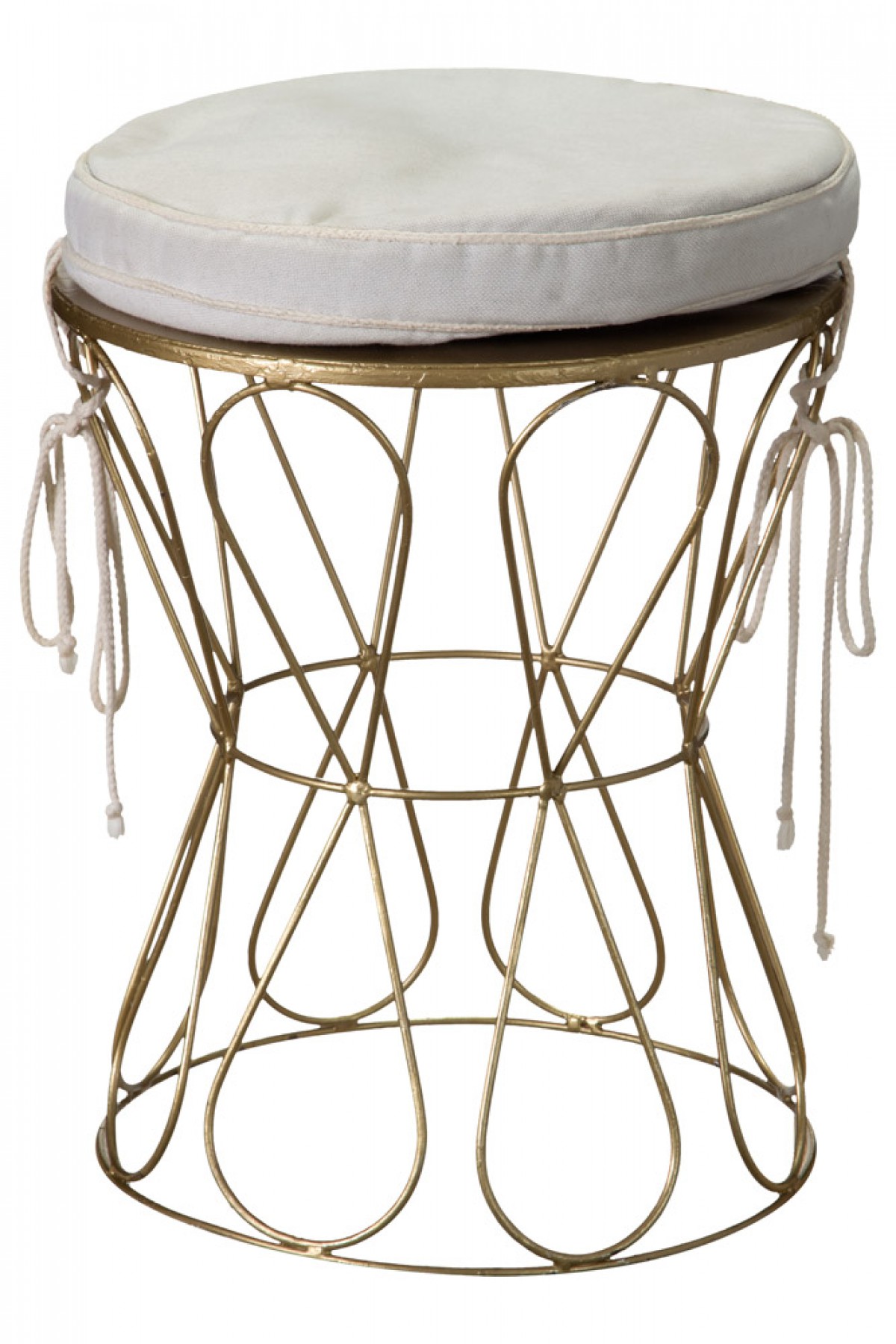 BANQUETA DE FERRO DOURADA MARIA ANTONIETA COM ASSENTO LINHO CRU
