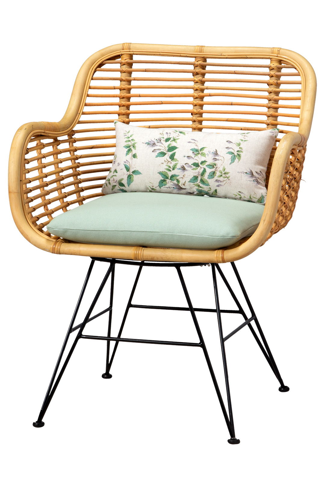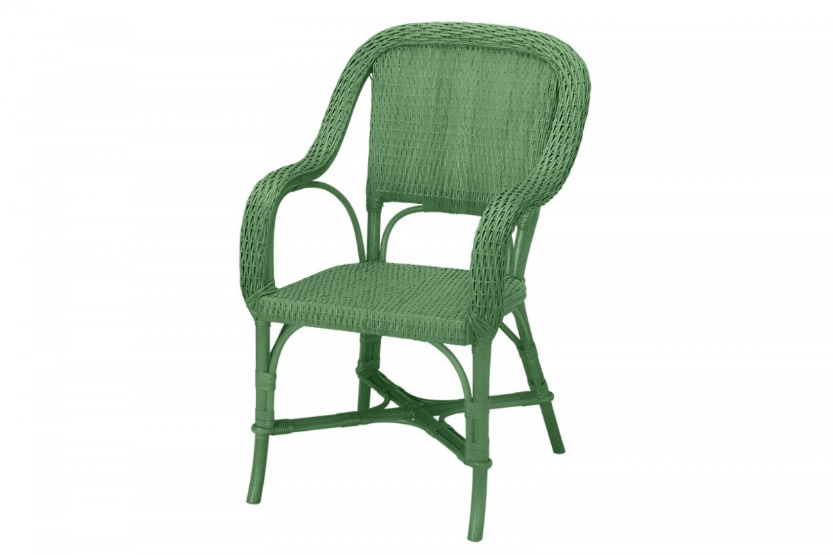 CADEIRA DE RATAM COM BRAÇO TURIM ASSENTO LINHÃO VERDE CAMAFEU RINZEIRA FUCHSIA REGIA