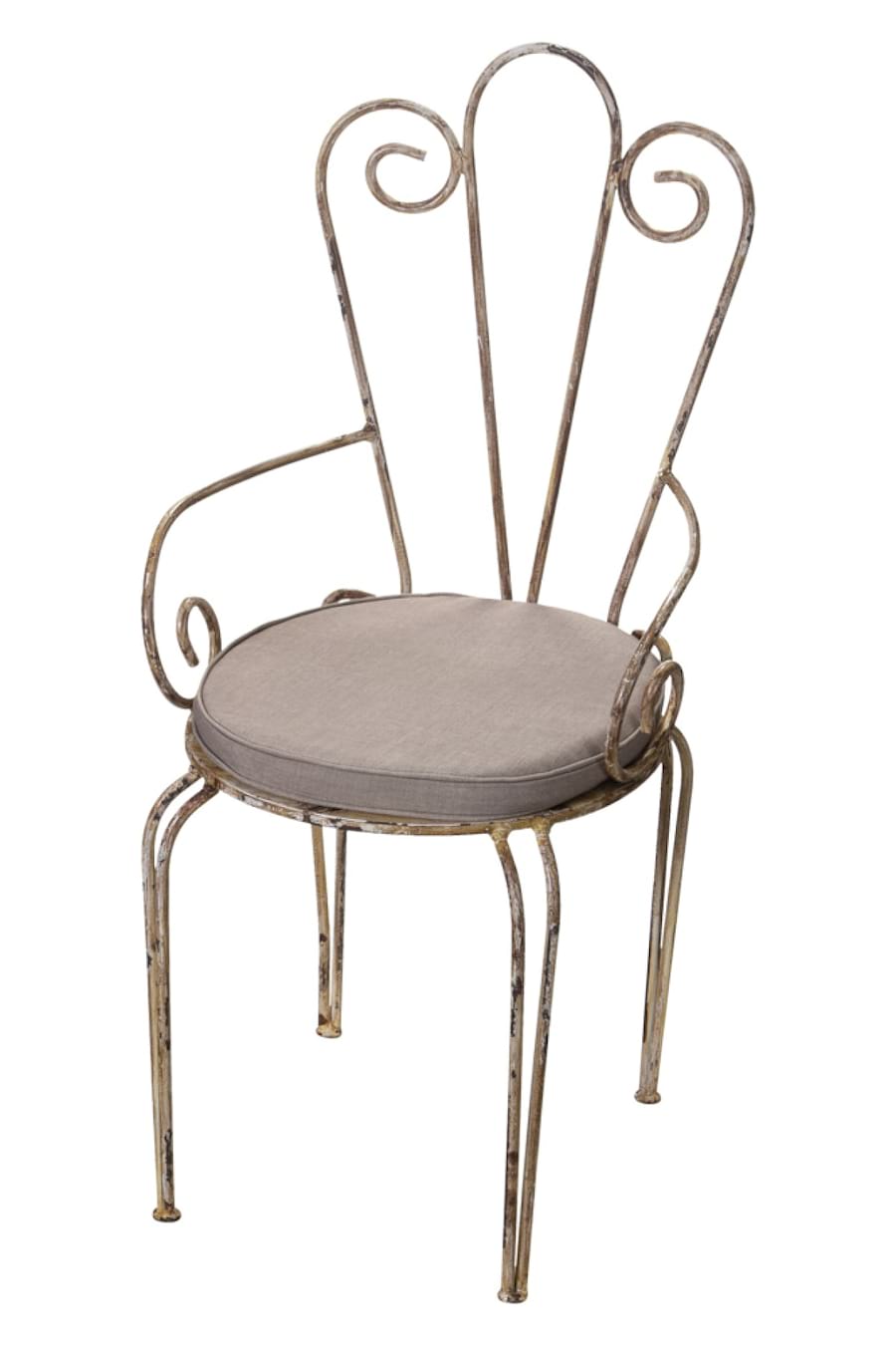 CADEIRA DE FERRO BEGE MARIA ANTONIETA ASSENTO LINHÃO CAPUCCINO TEX