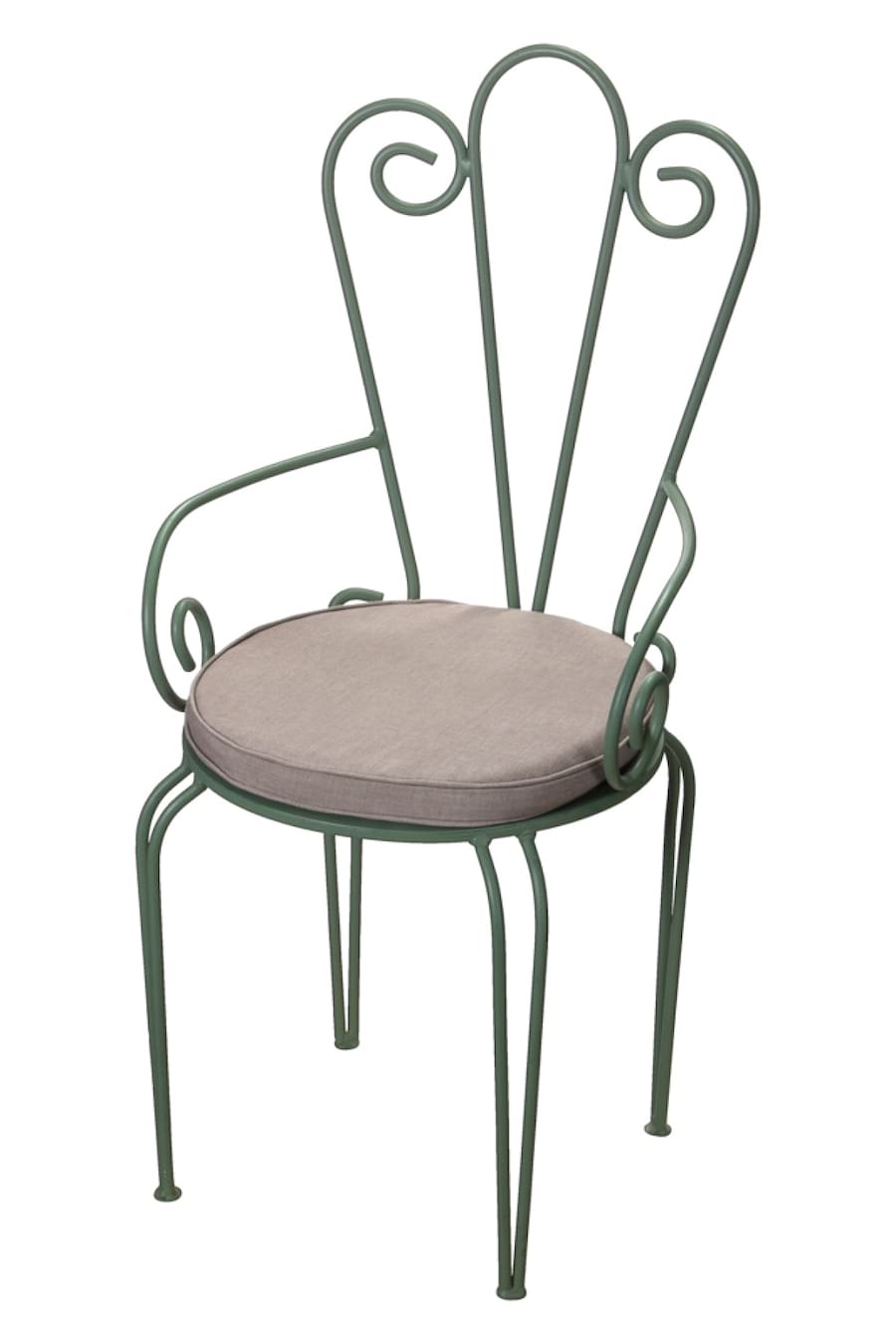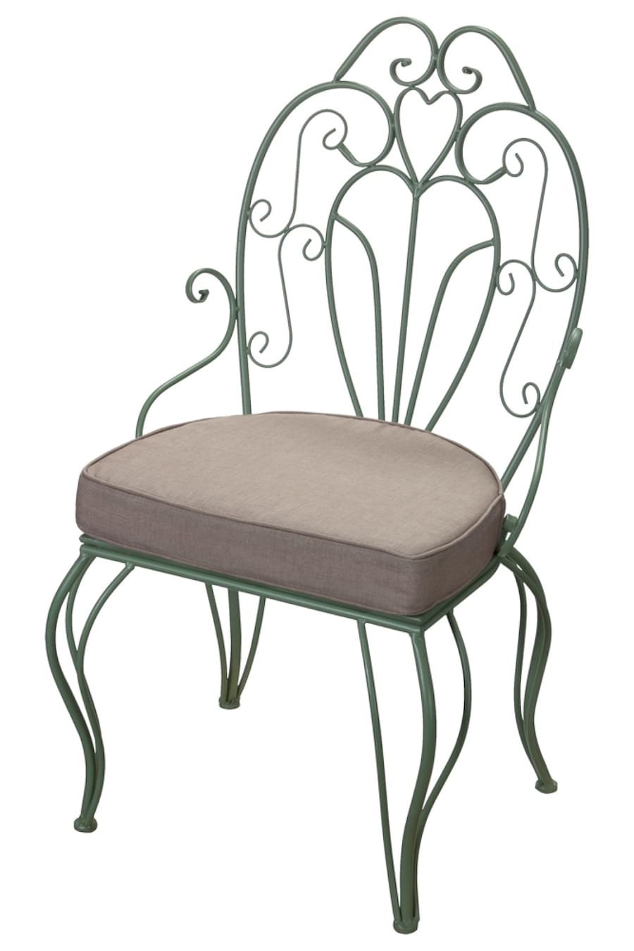 CADEIRA DE FERRO VERDE MARIA ANTONIETA ASSENTO LINHÃO CAPUCCINO