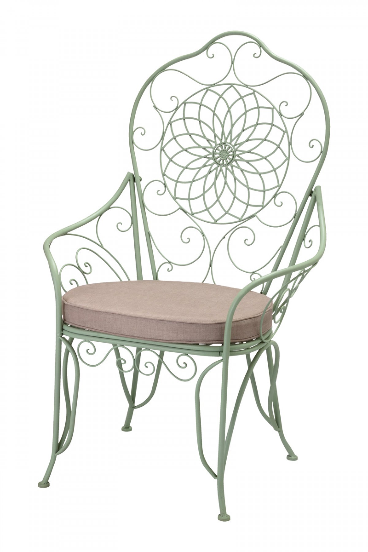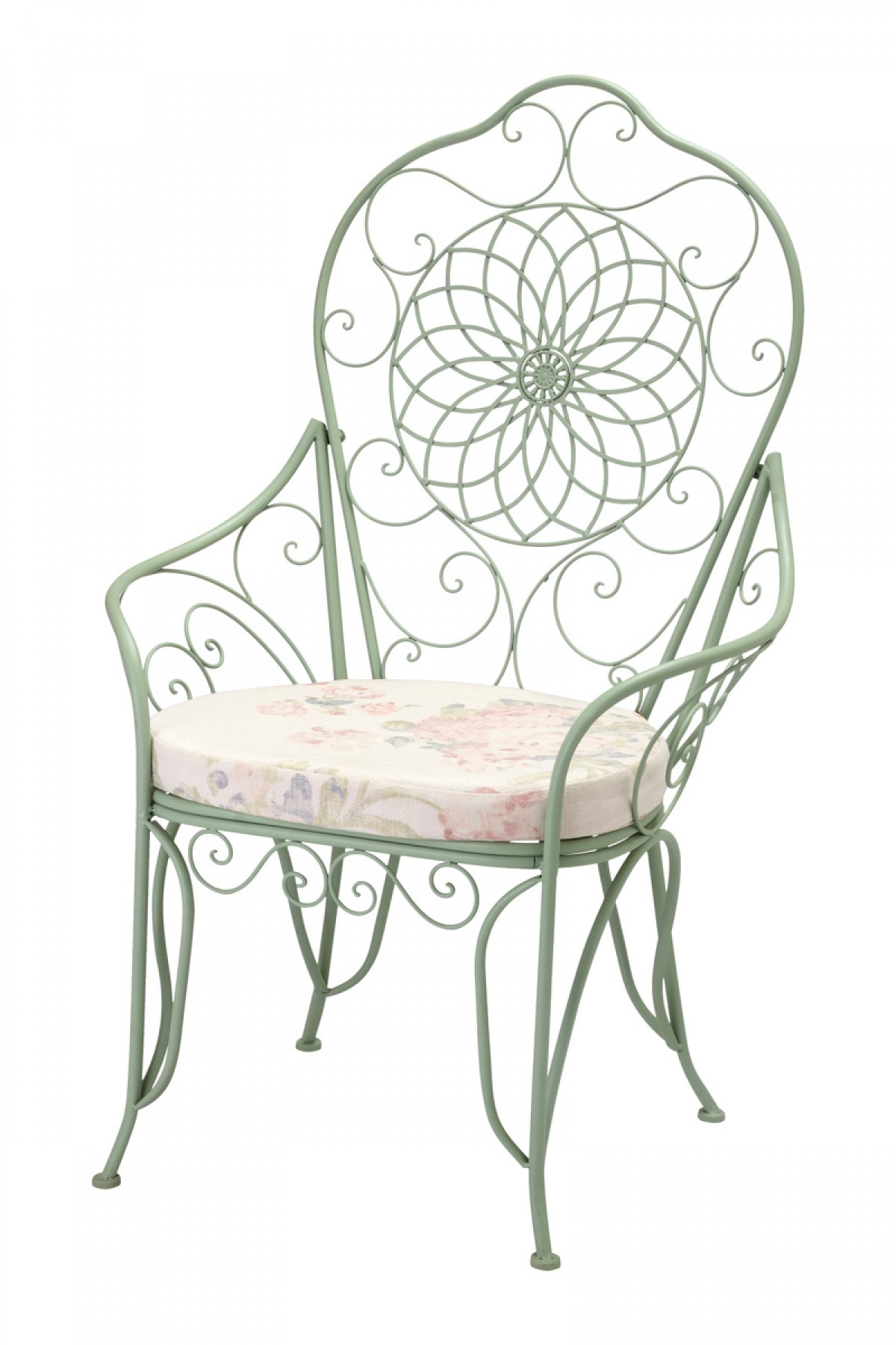 CADEIRA DE FERRO MARIA ANTONIETA VERDE CELADON ASSENTO FLOR FRESH PASTEL