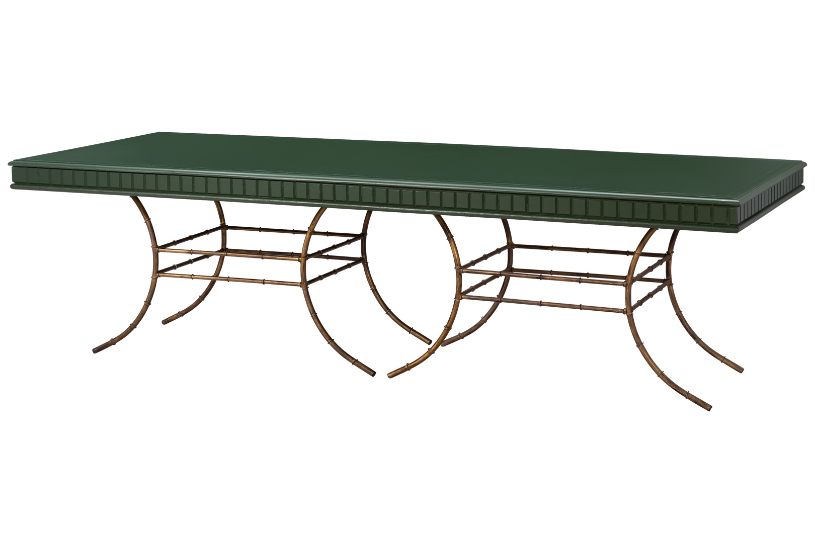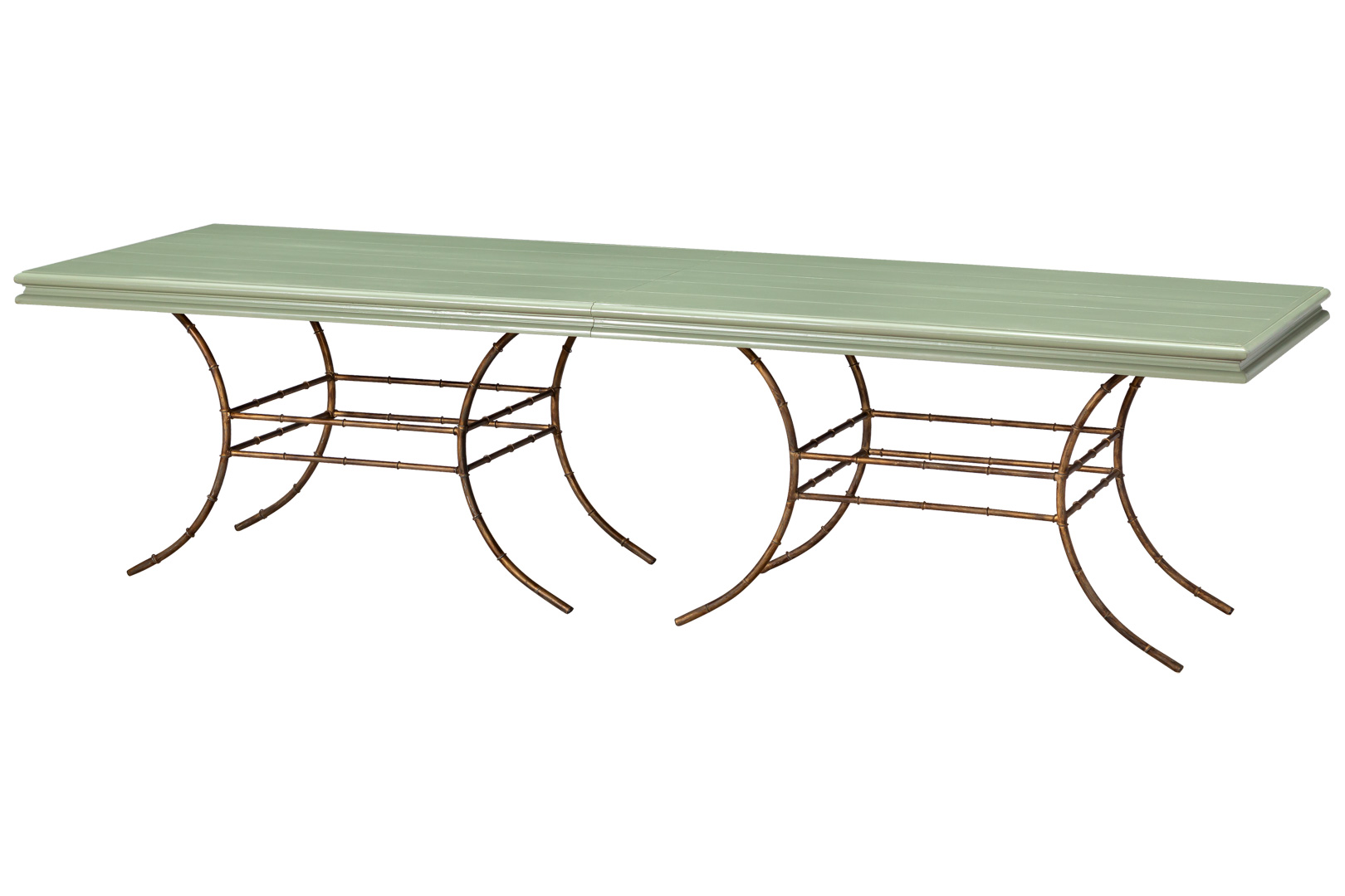 MESA ZURIQUE VERDE AVOCADO COM BASE TAITI RETANGULAR OURO VELHO