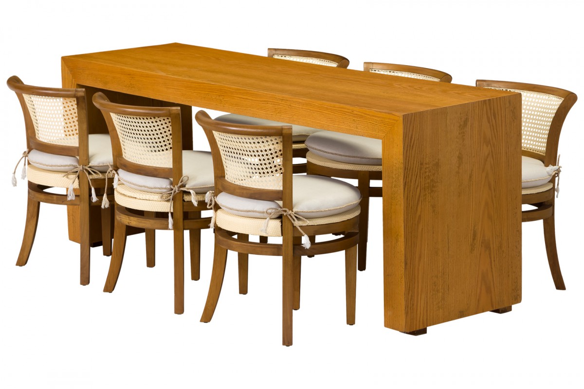 MESA BISTRO BAIXA CARVALHO AMERICANO COM 6 POLTRONAS LIVIA COM PALHA