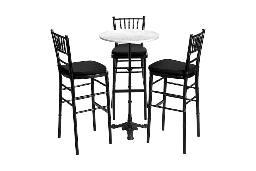 MESA BISTRÔ REDONDA PORTUGUESA COM BANQUETAS TIFANY PRETA