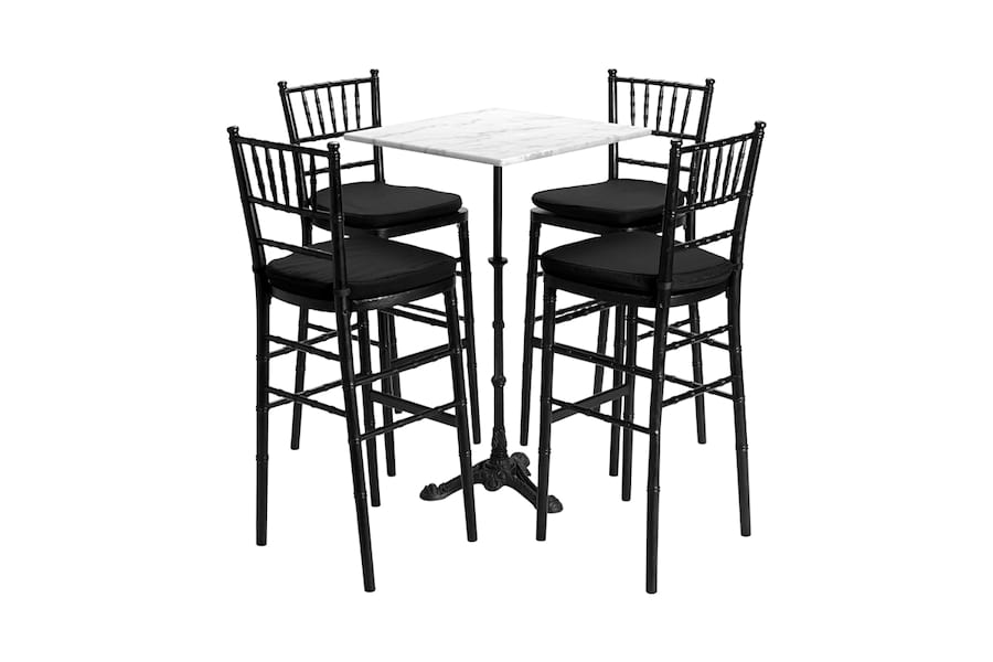 MESA BISTRÔ QUADRADA PORTUGUESA COM BANQUETAS TIFANY PRETA