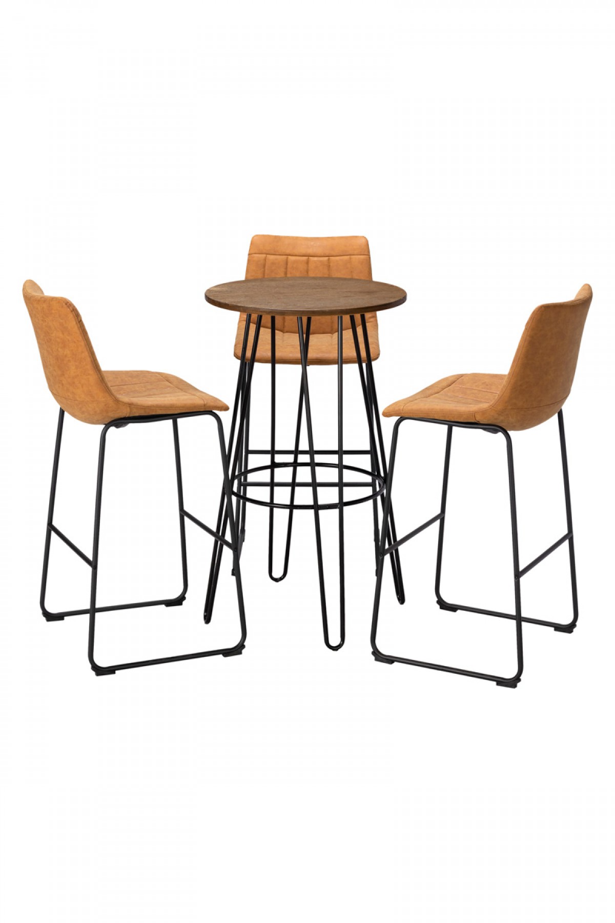 MESA BISTRÔ REDONDA MONTENEGRO PRETA COM BANQUETAS BARRETOS CARAMELO