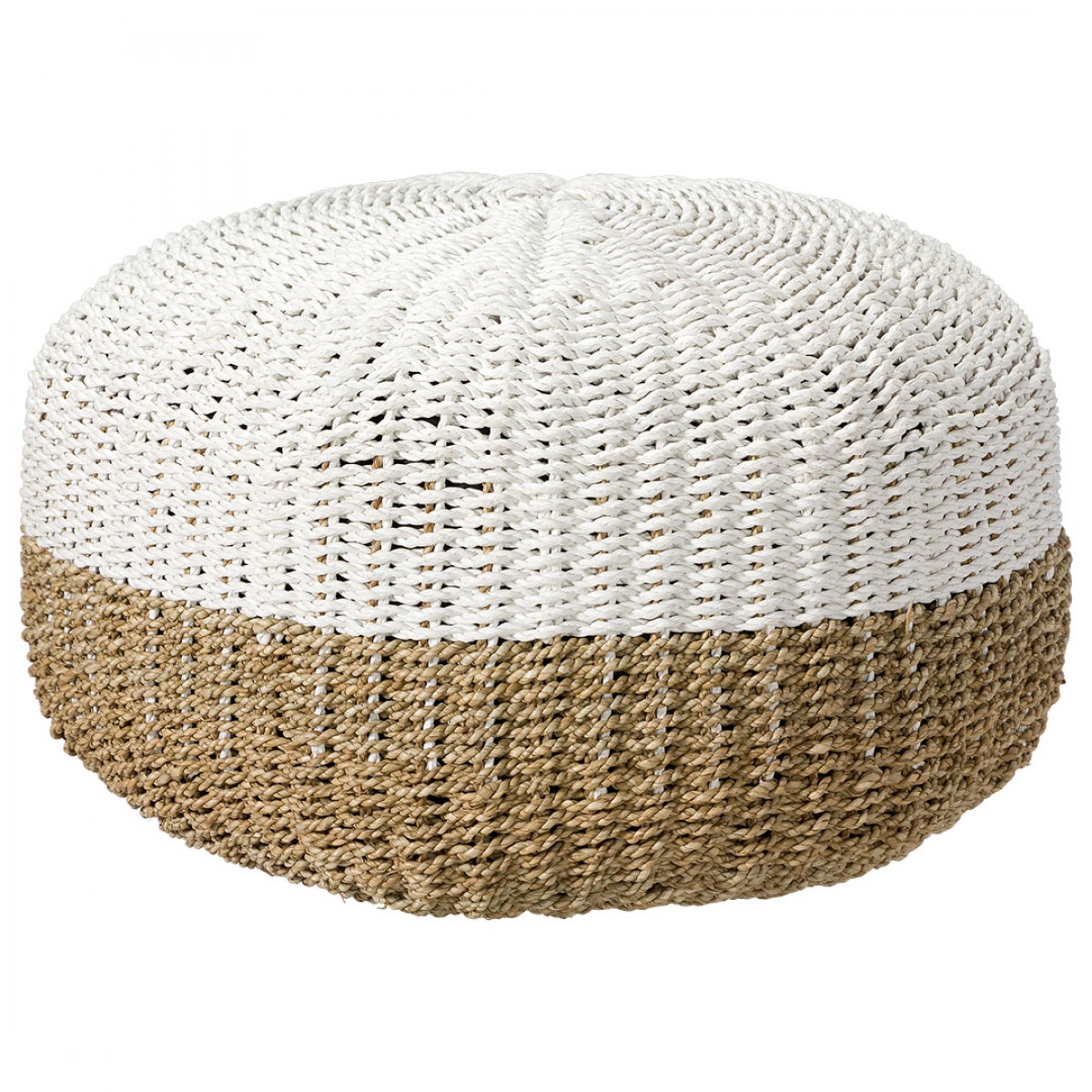 PUFF BANGALORE REDONDO FIBRA NATURAL E BRANCO GRANDE