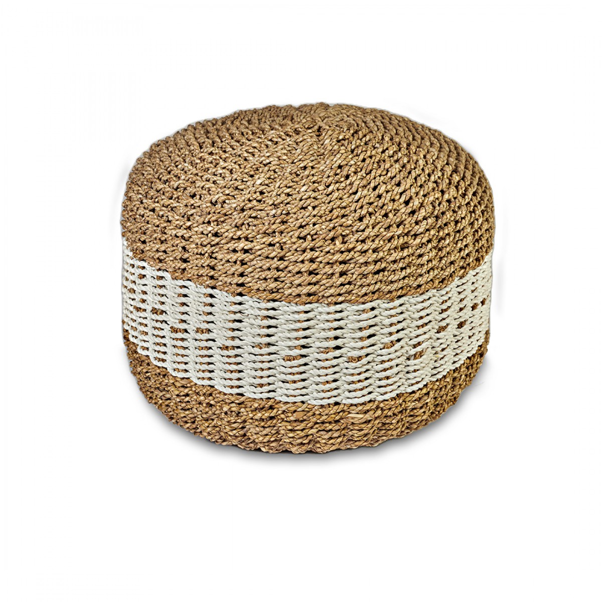 PUFF BANGALORE REDONDO FIBRA NATURAL E BRANCO PEQUENO