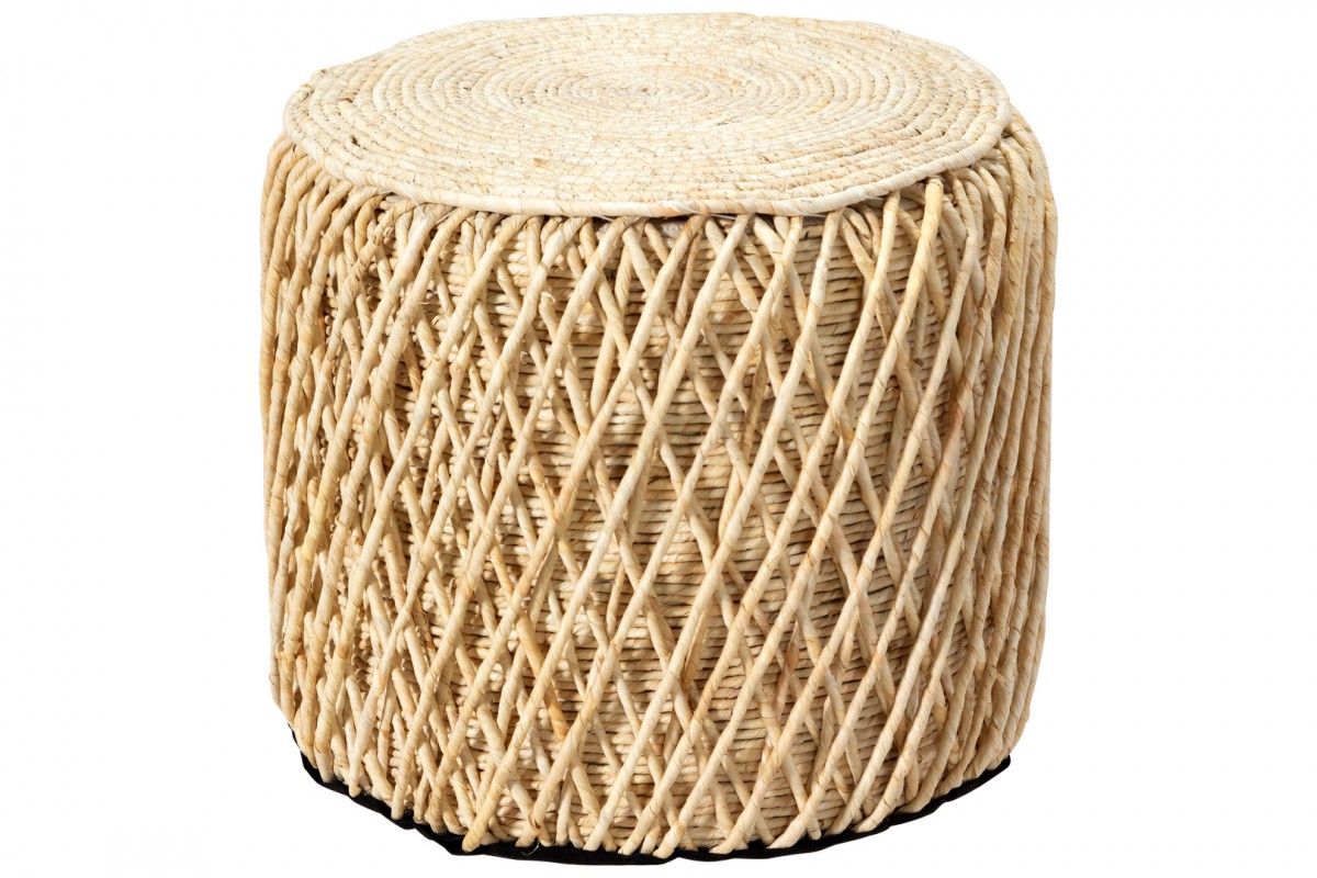 BANQUETA MAIORI REDONDA FIBRA NATURAL TRAMA VAZADA