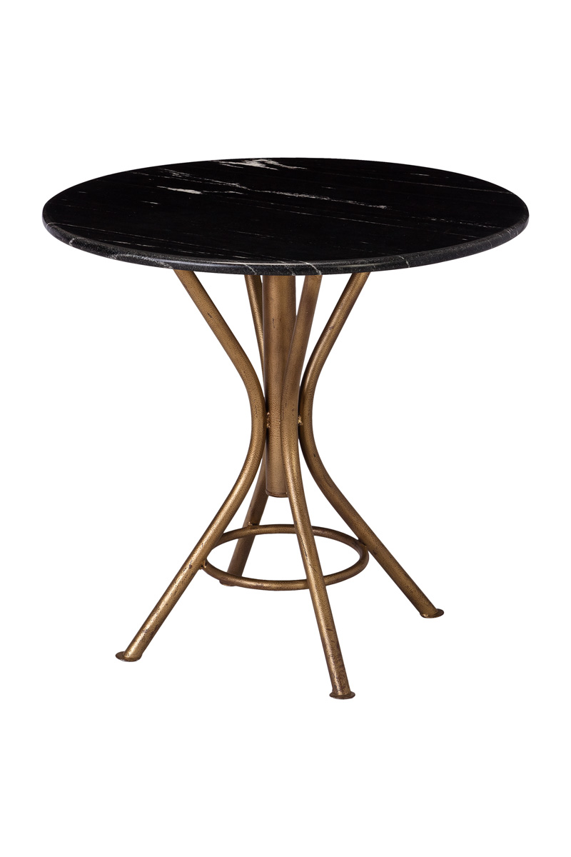 MESA LATERAL DE MÁRMORE PRETO NERO COM BASE DE FERRO GUARUJÁ REDONDA OURO VELHO