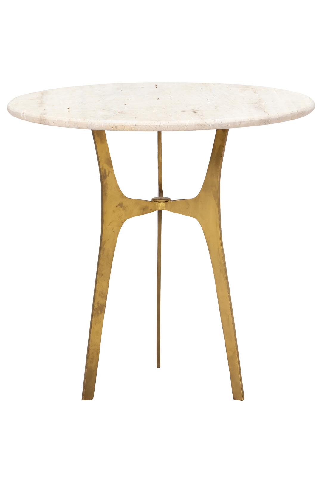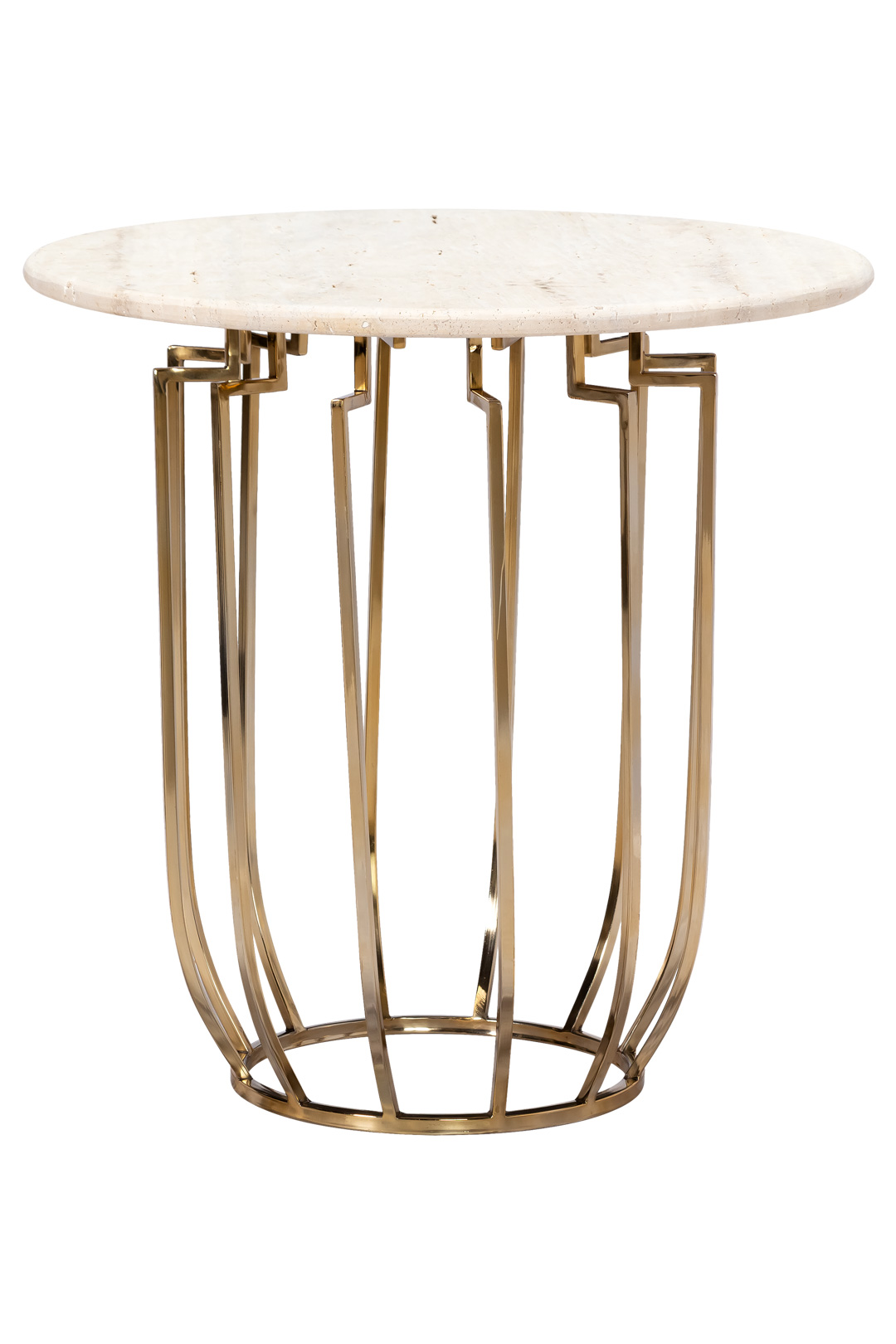 MESA LATERAL ALTA ELOISA COM TAMPO MÁRMORE TRAVERTINO ROMANO 0.60M DIAM