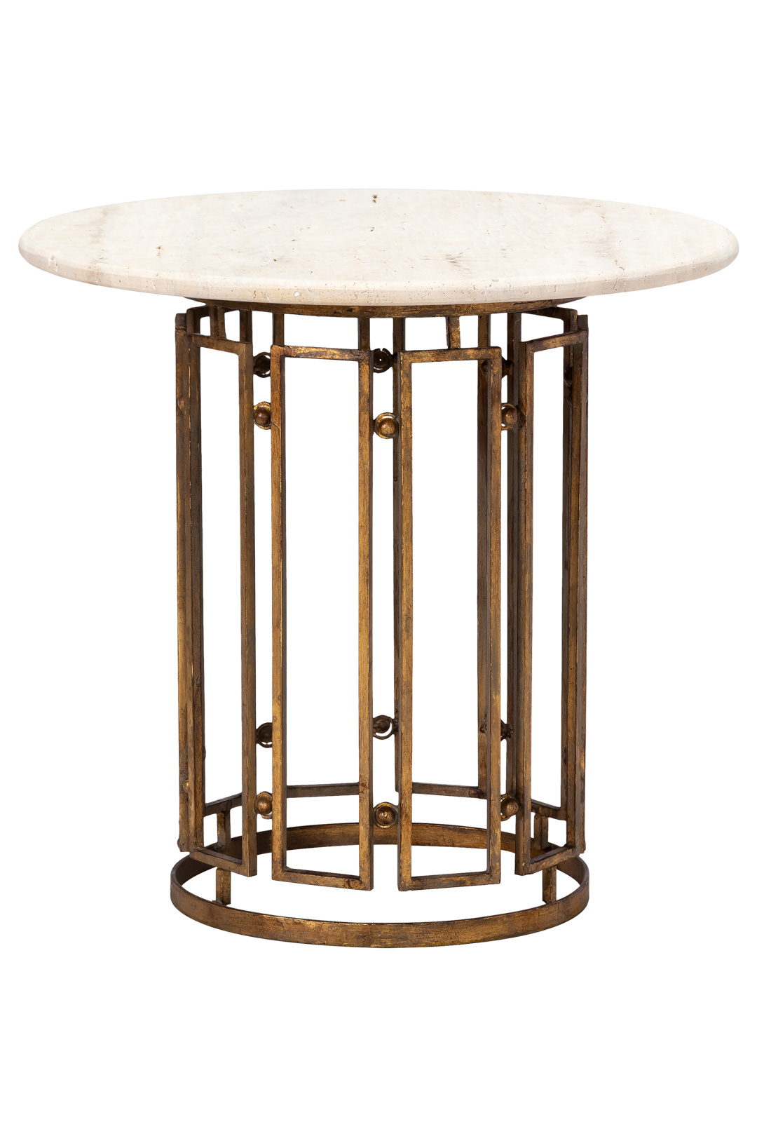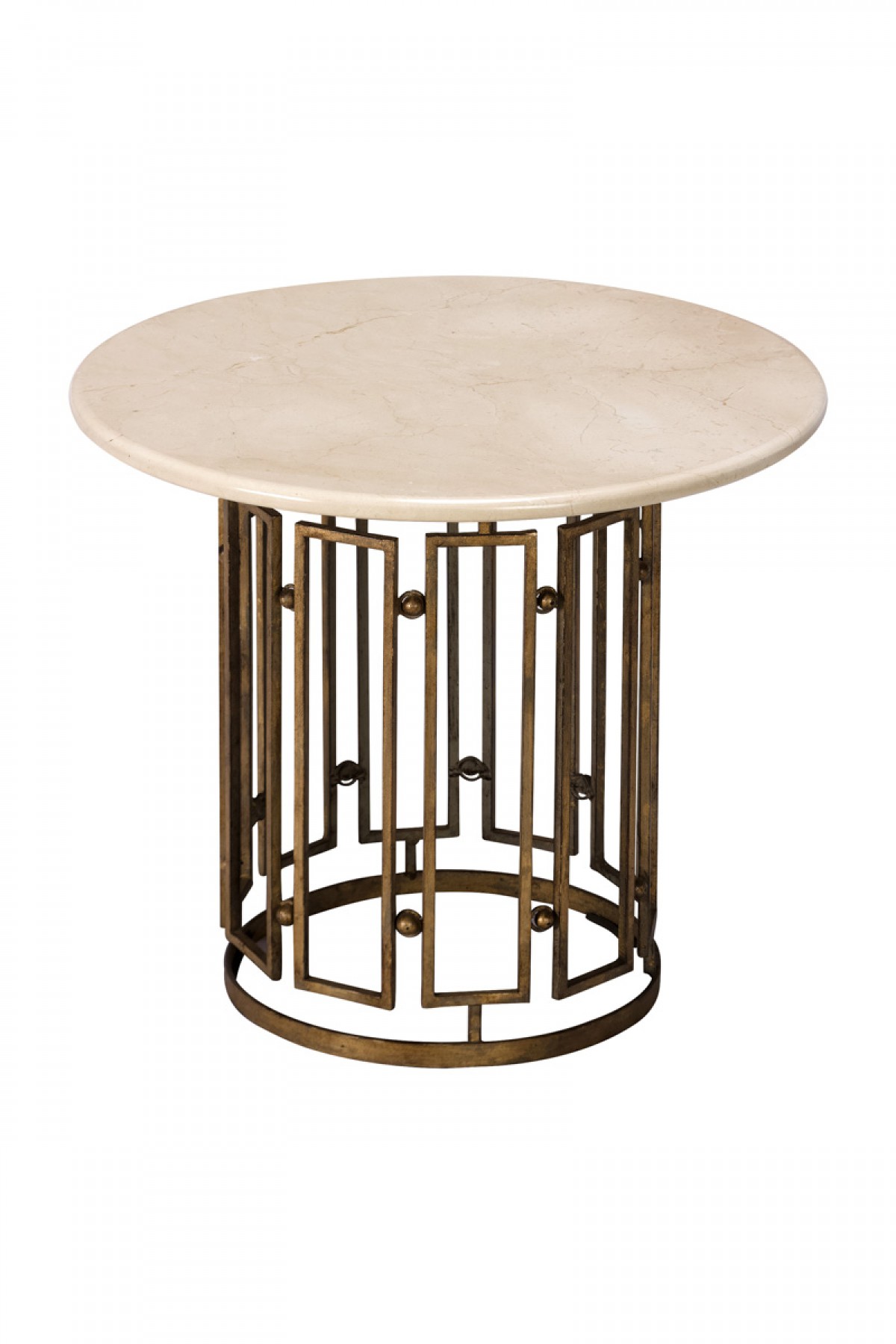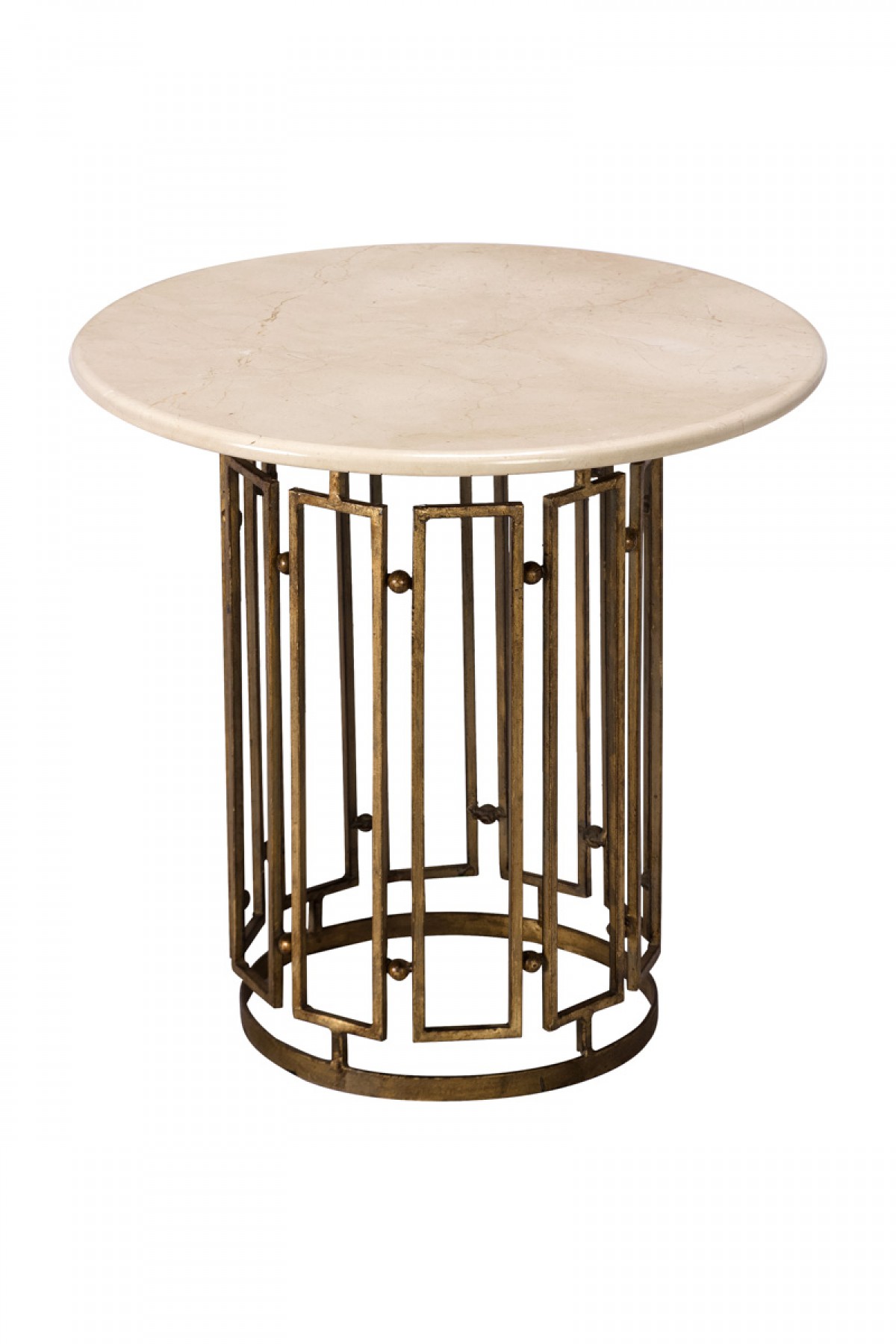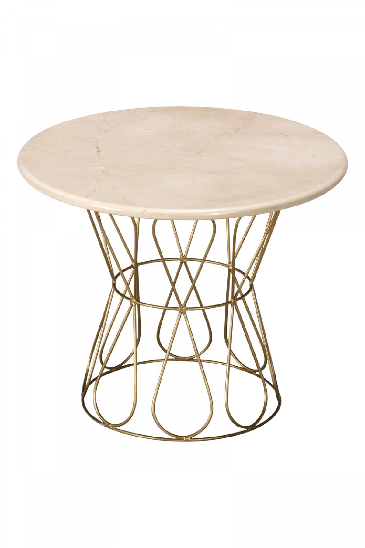 MESA LATERAL MÁRMORE CREMA MARFIL COM BASE DE FERRO MARIA ANTONIETA DOURADA
