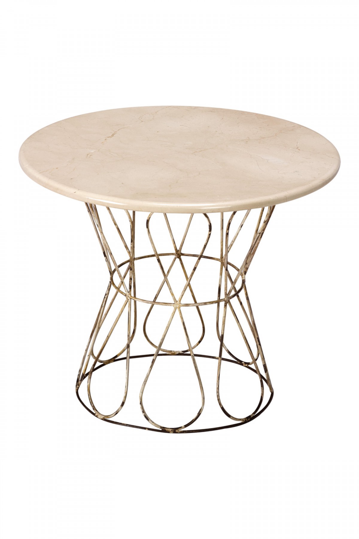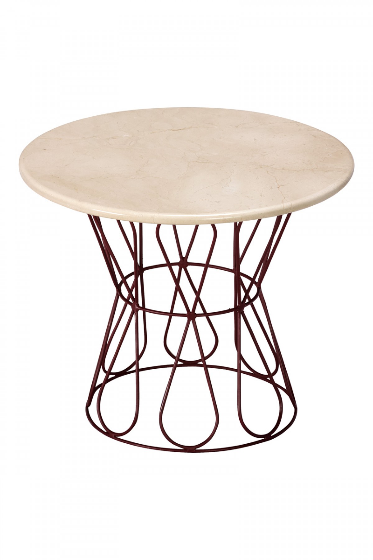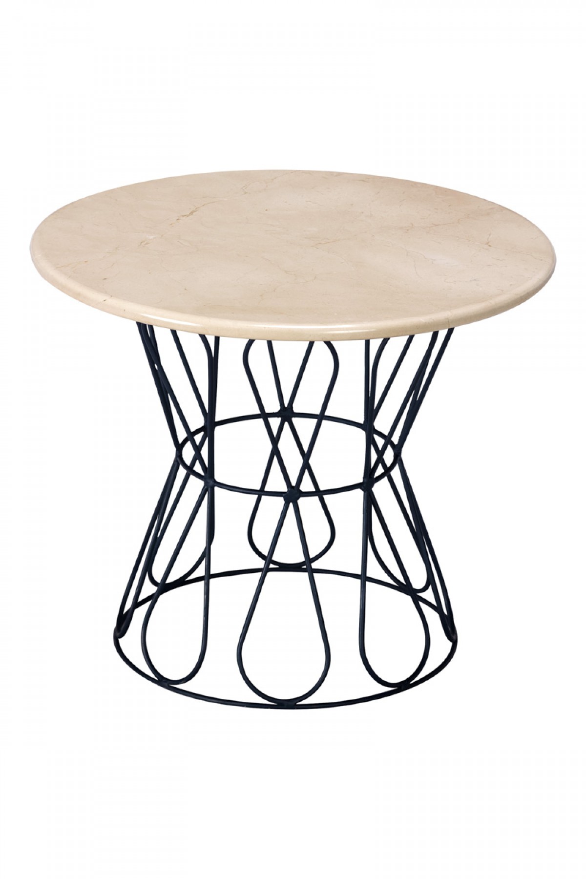 MESA LATERAL MÁRMORE CREMA MARFIL COM BASE DE FERRO MARIA ANTONIETA MARSALA
