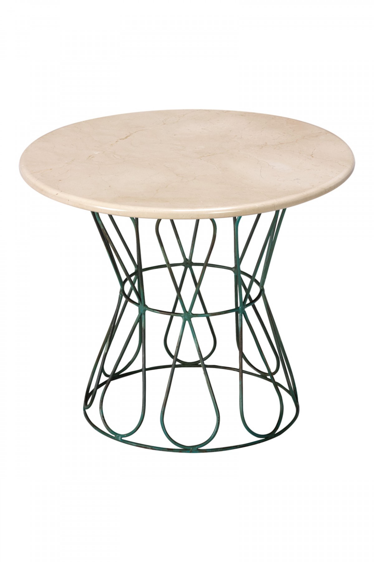 MESA LATERAL MÁRMORE CREMA MARFIL COM BASE DE FERRO MARIA ANTONIETA VERDE