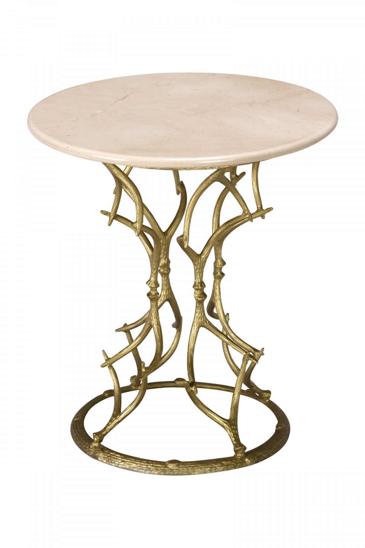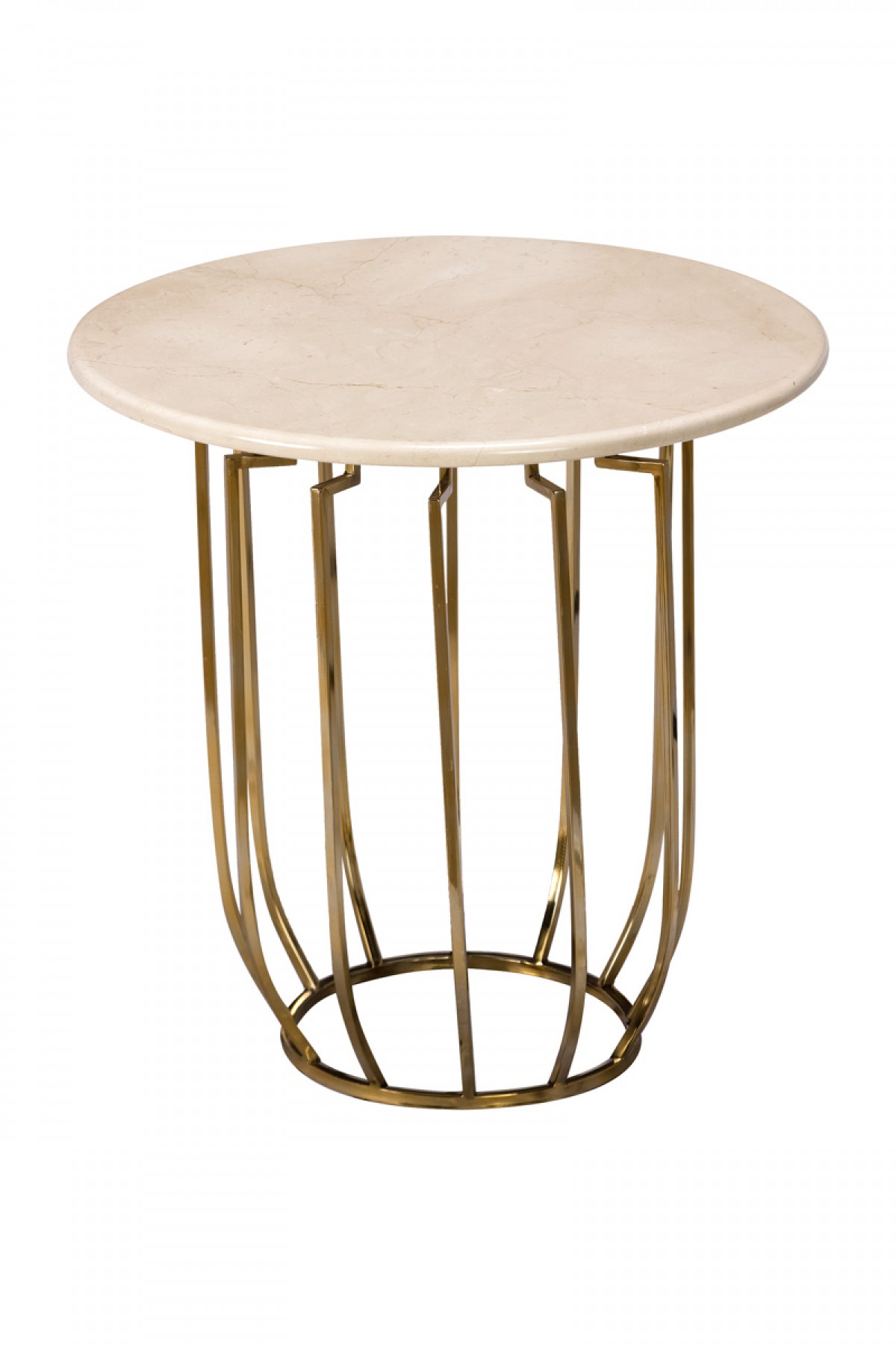 MESA LATERAL ESMERALDA DOURADA ALTA COM TAMPO MÁRMORE CREMA MARFIL 0.60M DIAM