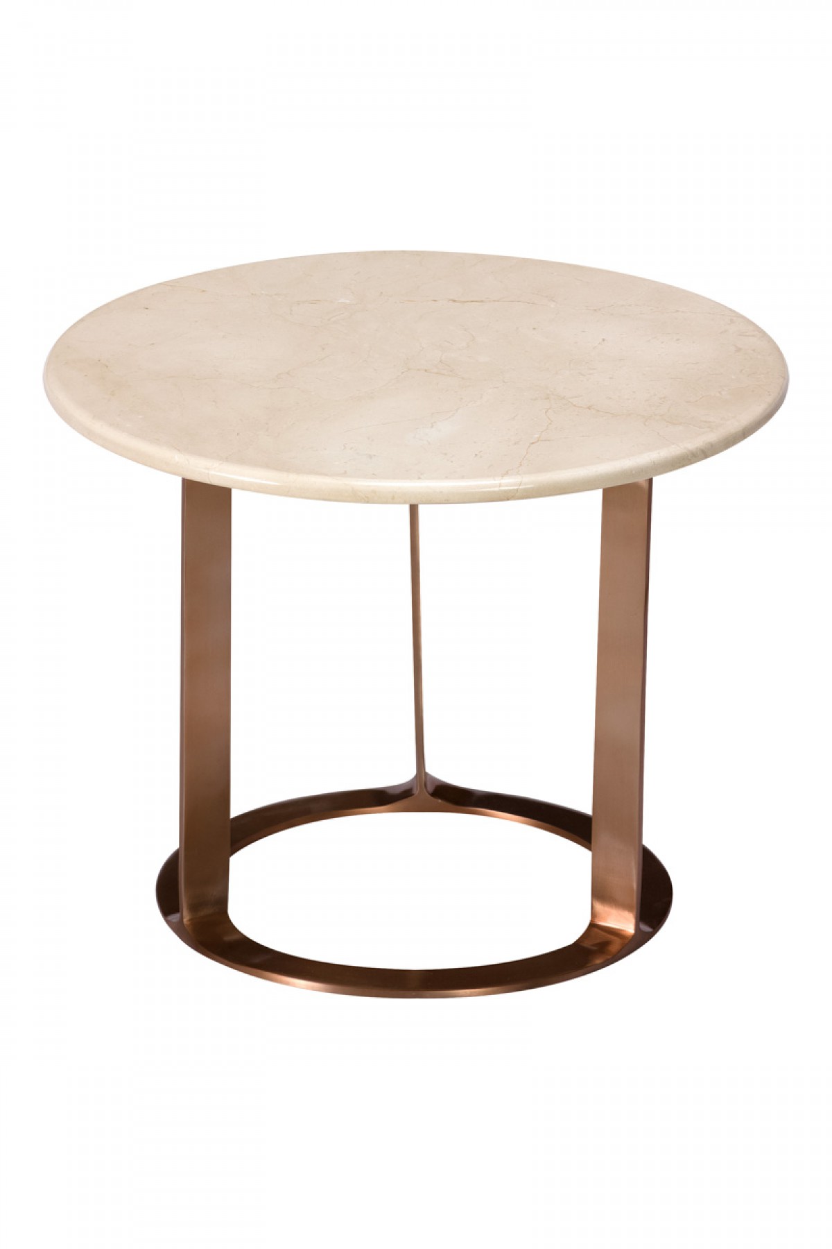 MESA LATERAL BAIXA ELOISA COM TAMPO MÁRMORE CREMA MARFIL 0.60M DIAM