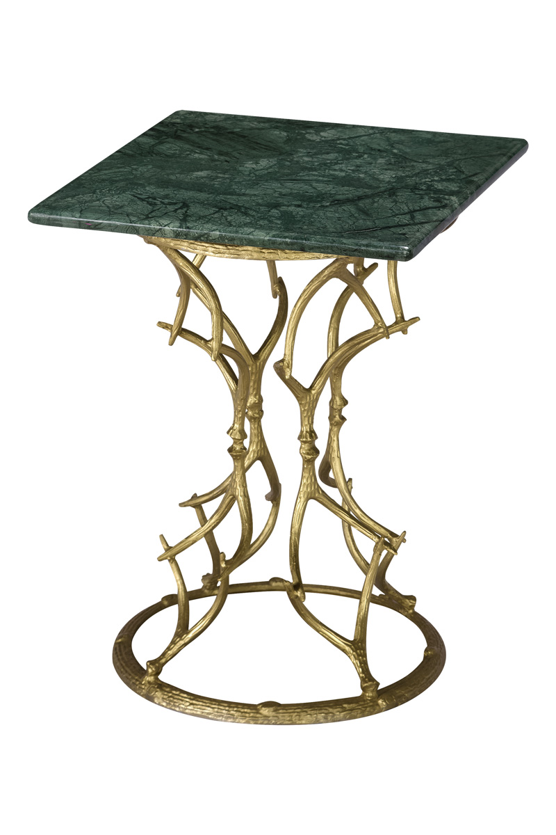 MESA LATERAL RARITY DOURADA COM TAMPO MÁRMORE GUATEMALA VERDE