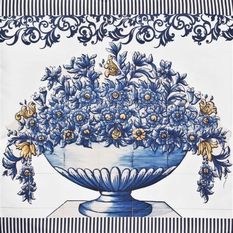CAPA ALMOFADA ESTAMPA AZULEJO AZUL/LISTRA/VASO