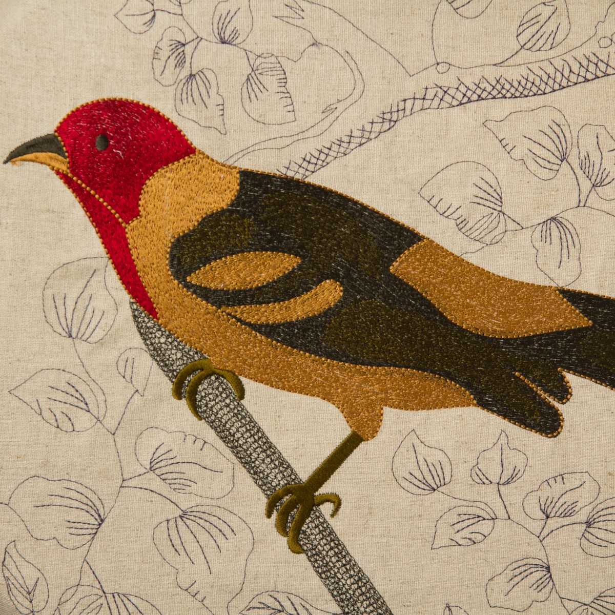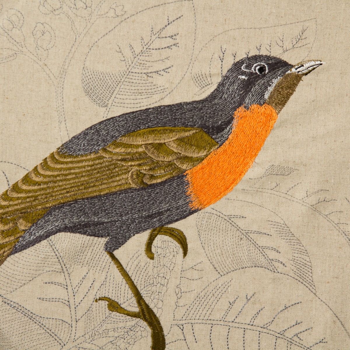 CAPA ALMOFADA BORDADA PÁSSARO VERMELHO