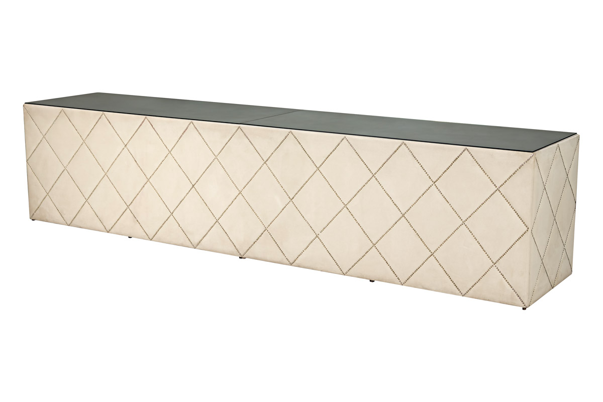 MESA RETANGULAR SOFIA TECIDO VINCA CRU COM VIDRO