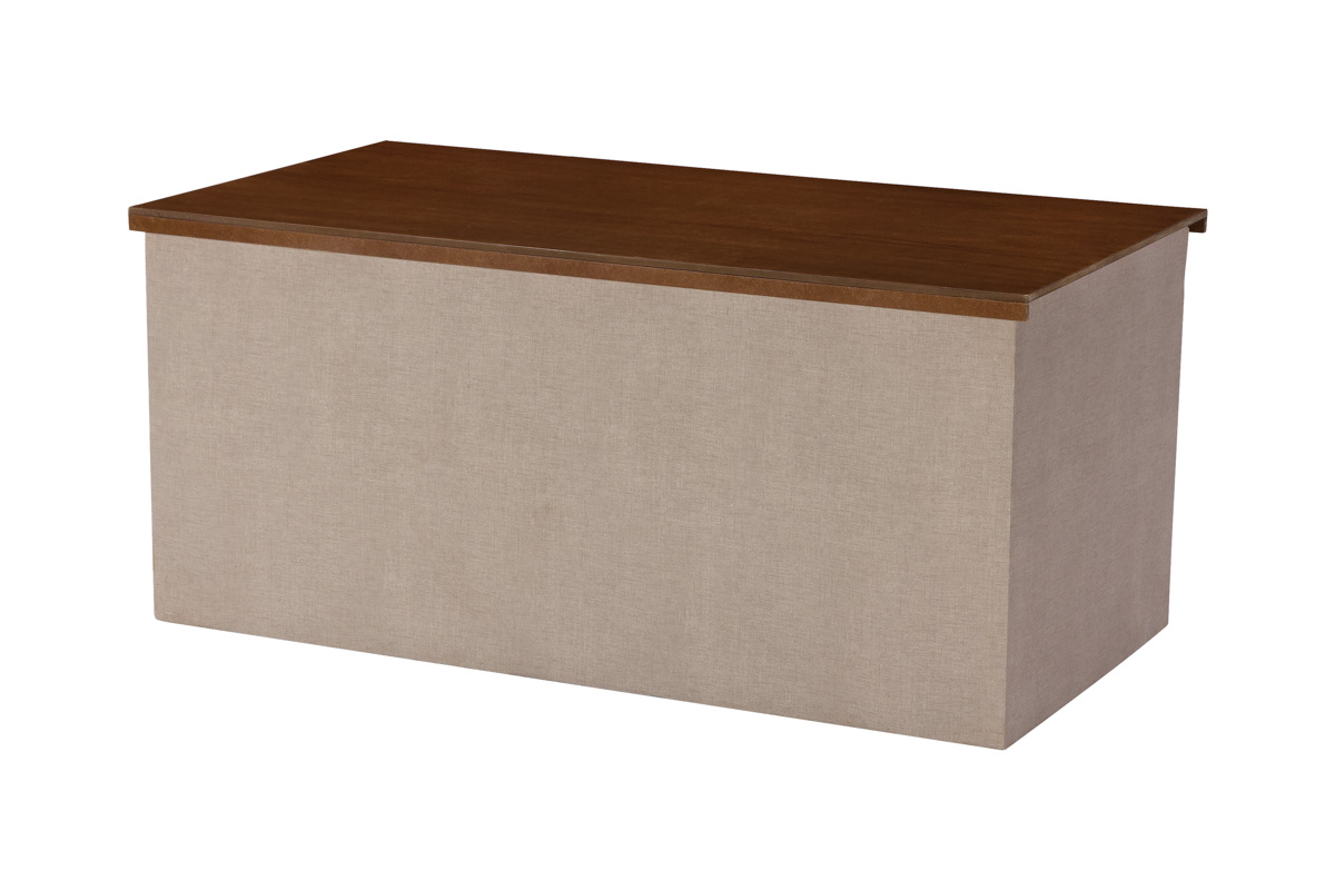 MESA RETANGULAR SOFIA COM TECIDO CAPUCCINO e tampo de madeira
