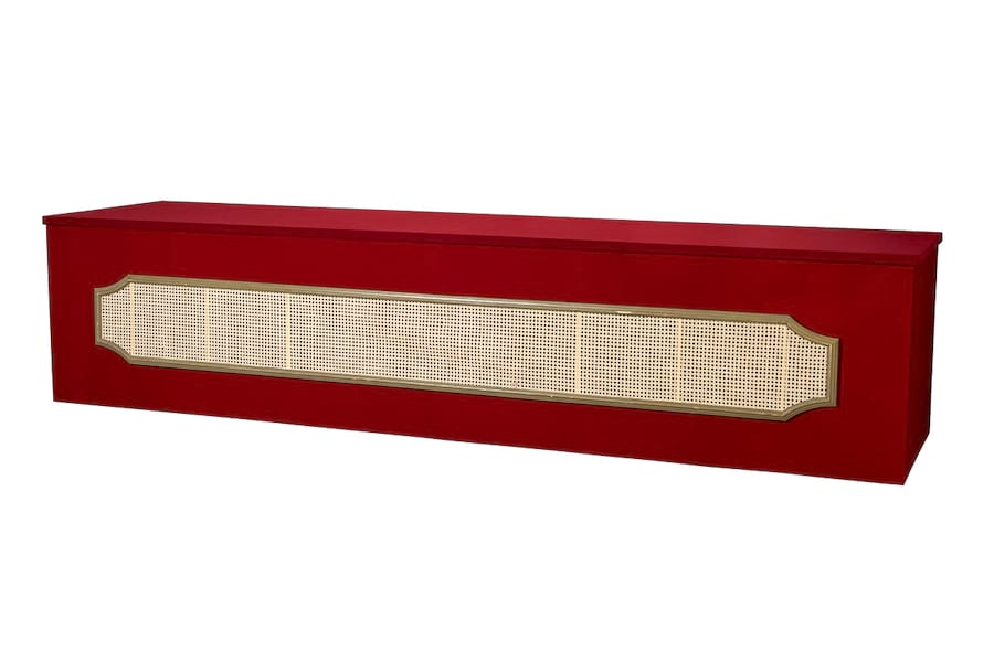 MESA RETANGULAR MANOELA C/PAINEL TELA BORDÔ