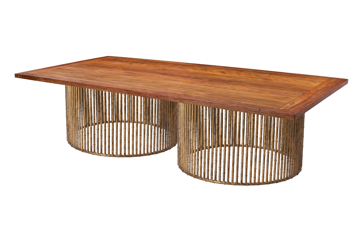 MESA DE FERRO SINTRA COM TAMPO moscou imbuia 2m diam