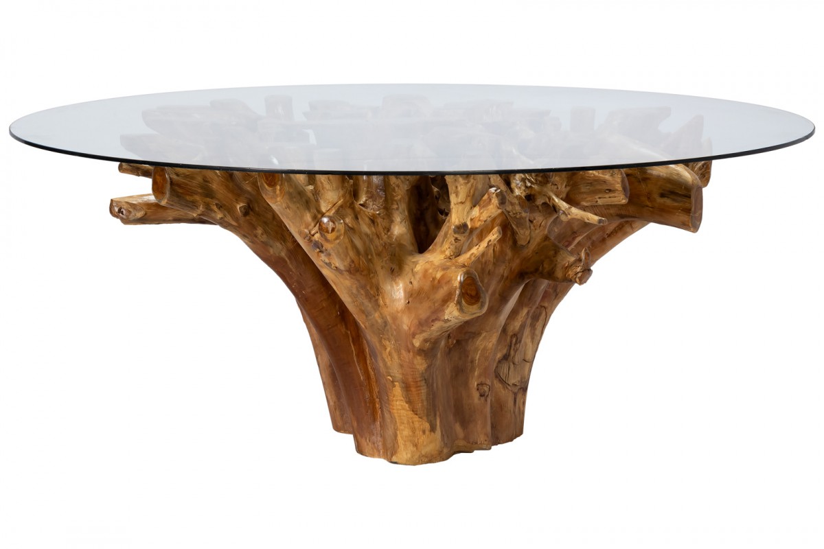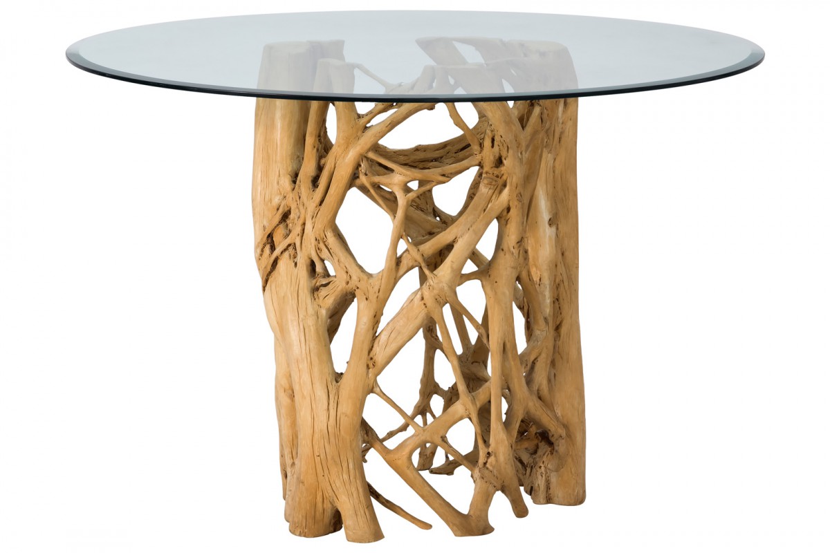 MESA REDONDA RAIZ CAIZUCA COM TAMPO DE VIDRO