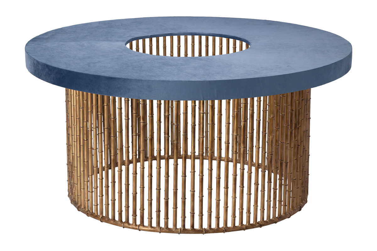 MESA DE FERRO SINTRA COM TAMPO JOINVILLE VELUDO VINCA 06 AZUL &