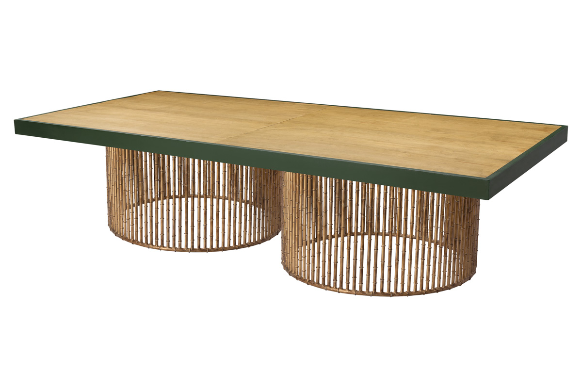 MESA RETANGULAR GREEN COM TAMPO COURO VERDE CELADON