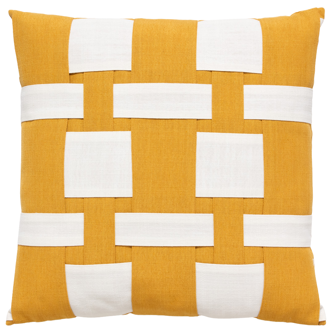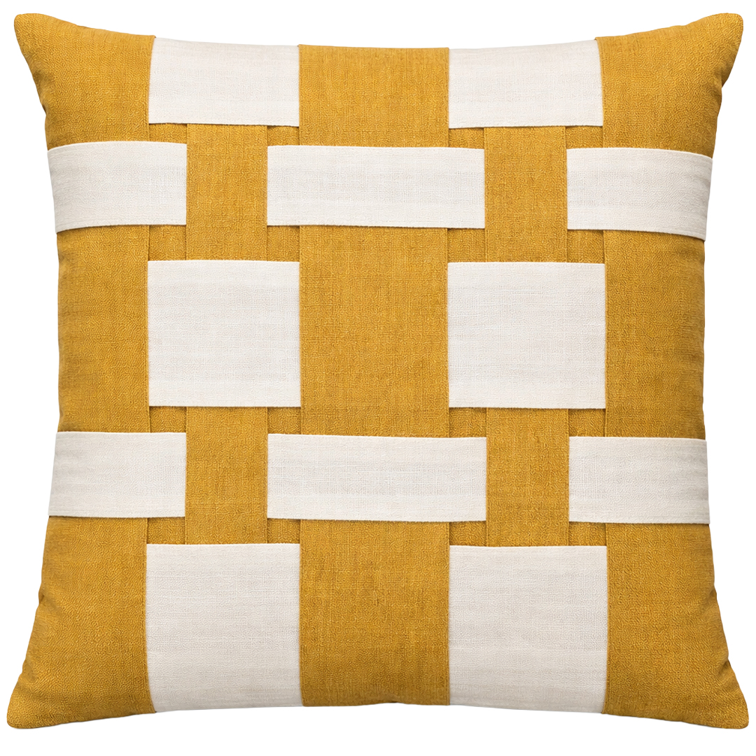 CAPA ALMOFADA QUADRADA MÉDIA AMÉRICAS YELLOW ENTRELAÇADAS OFF WHITE