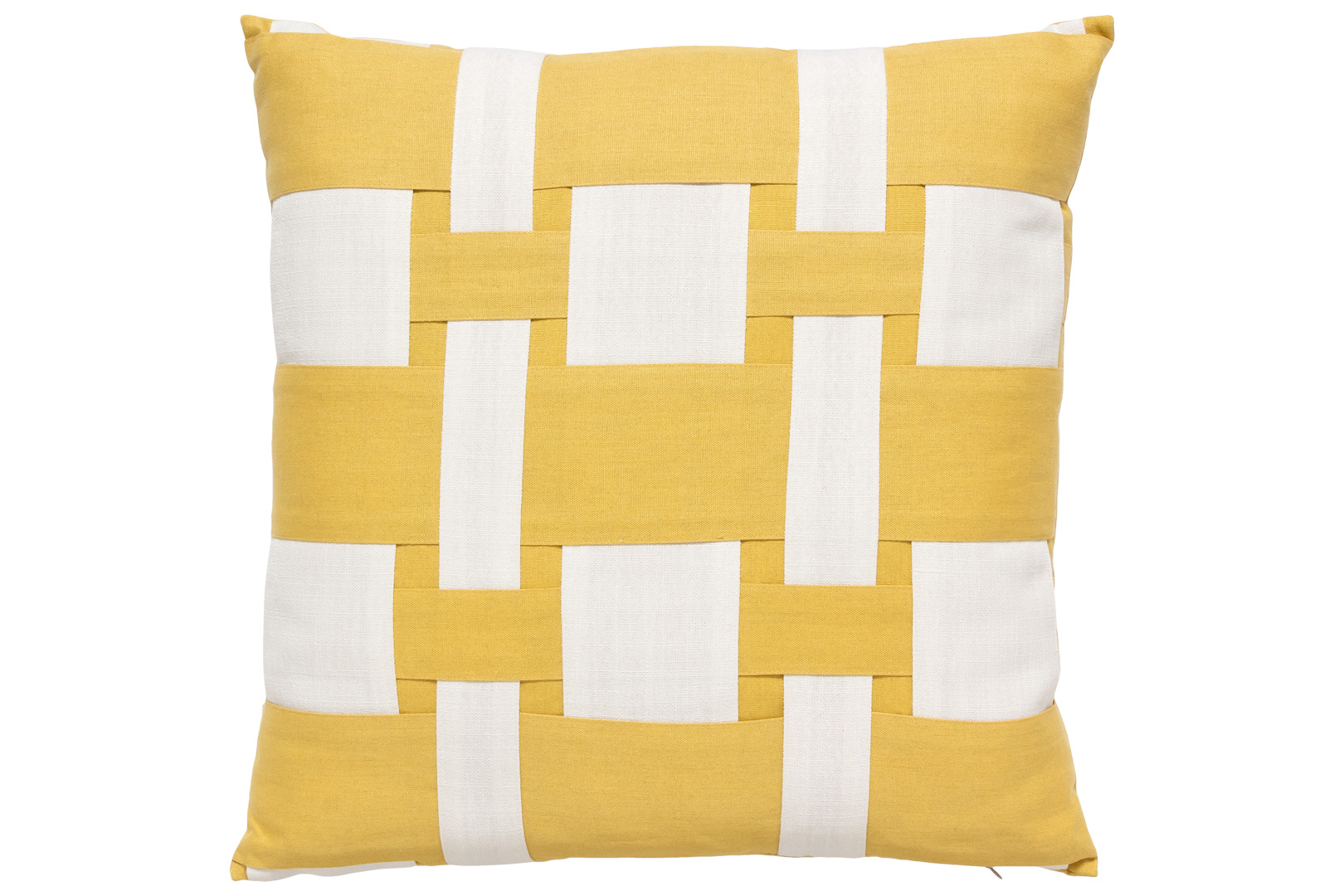 CAPA ALMOFADA QUADRADA MEDIA AMÉRICAS YELLOW CLARA ENTRELAÇADAS OFF WHITE
