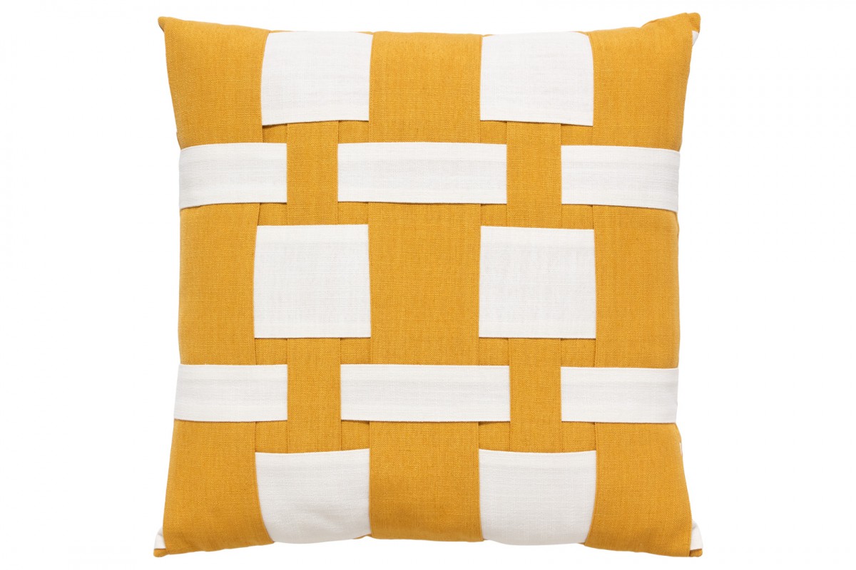 CAPA ALMOFADA QUADRADA MÉDIA AMÉRICAS YELLOW ENTRELAÇADAS OFF WHITE