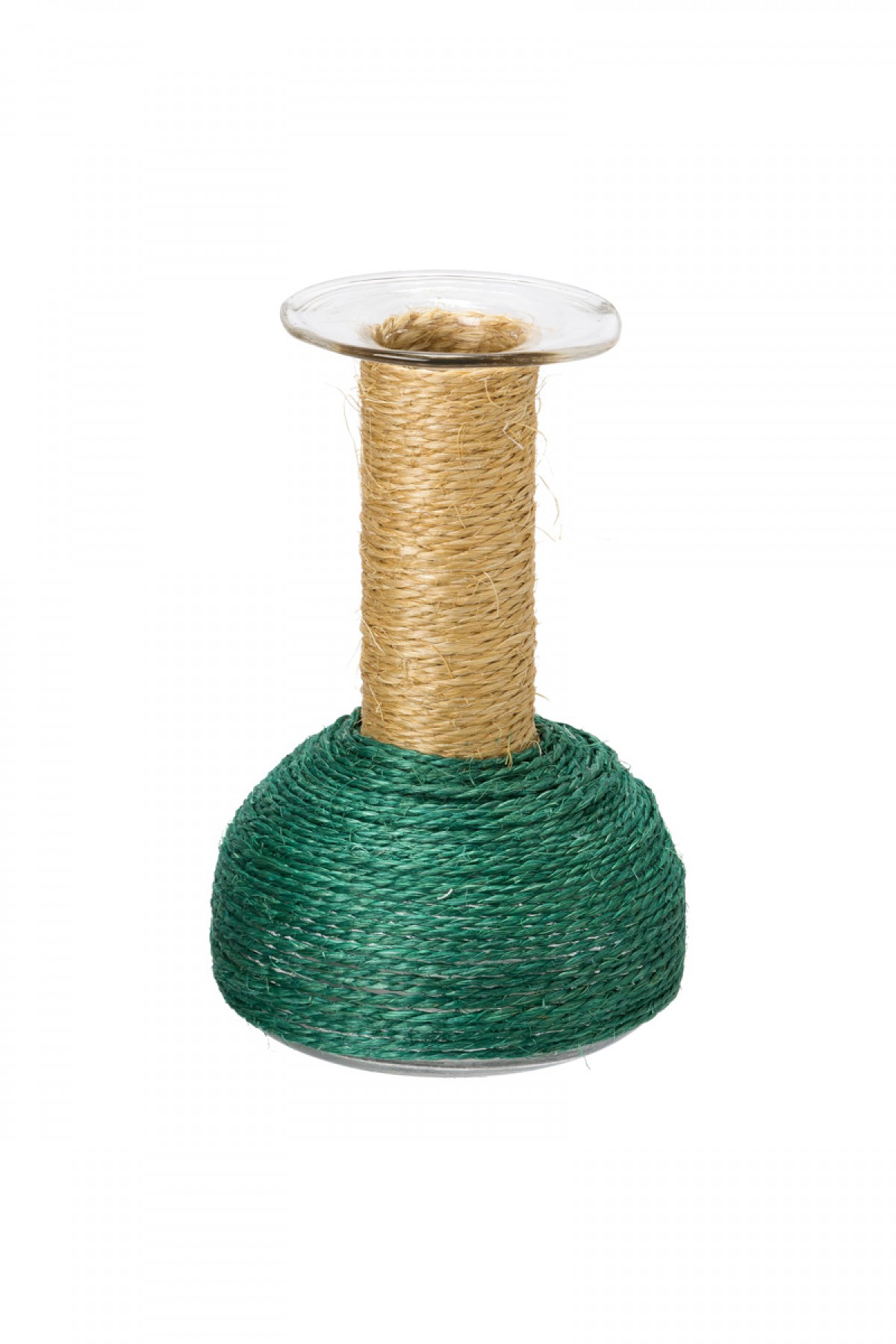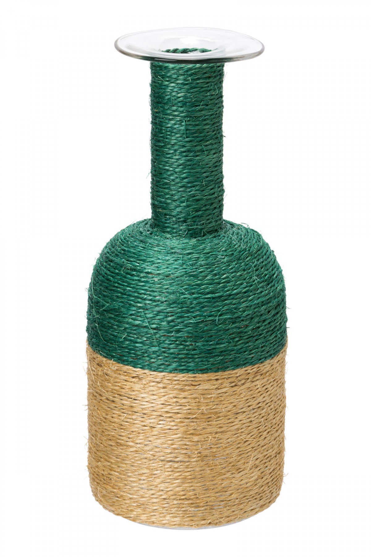 GARRAFA DE VIDRO E SISAL EM VERDE E BEGE P