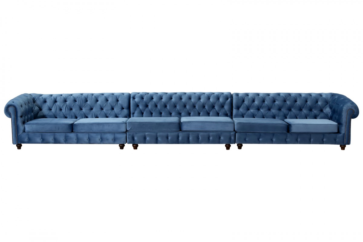 SOFA BRUNA CAPTONE VELUDO AZUL MEDITERRÂNEO 5,30 MTS (3 PARTES)